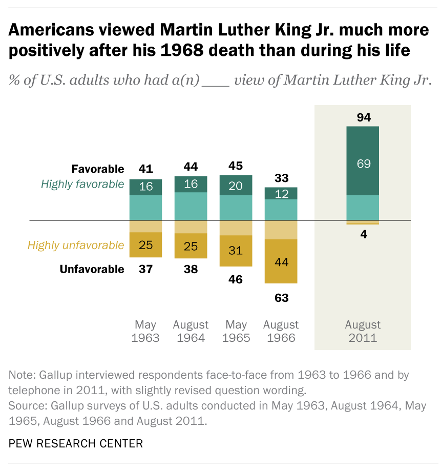 My students are always a little stunned when I tell them that MLK was not the popular hero in his time that he is made out to be today: