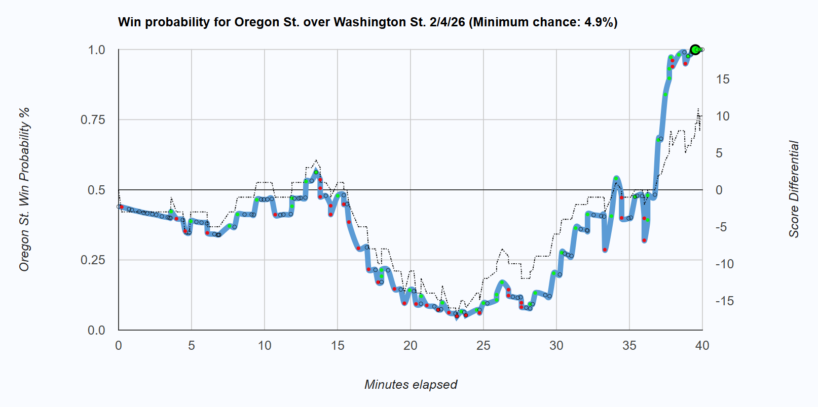 2 You’ll note the four points in a row where WSU didn’t touch the ball around the 2 minute mark is where the officials decided to assess a Flagrant 1 foul on Jerone Morton, a patently absurd call. The Cougars were already crumbling, so they may well have lost without it, but the insane upgrade certainly put OSU in the driver’s seat.