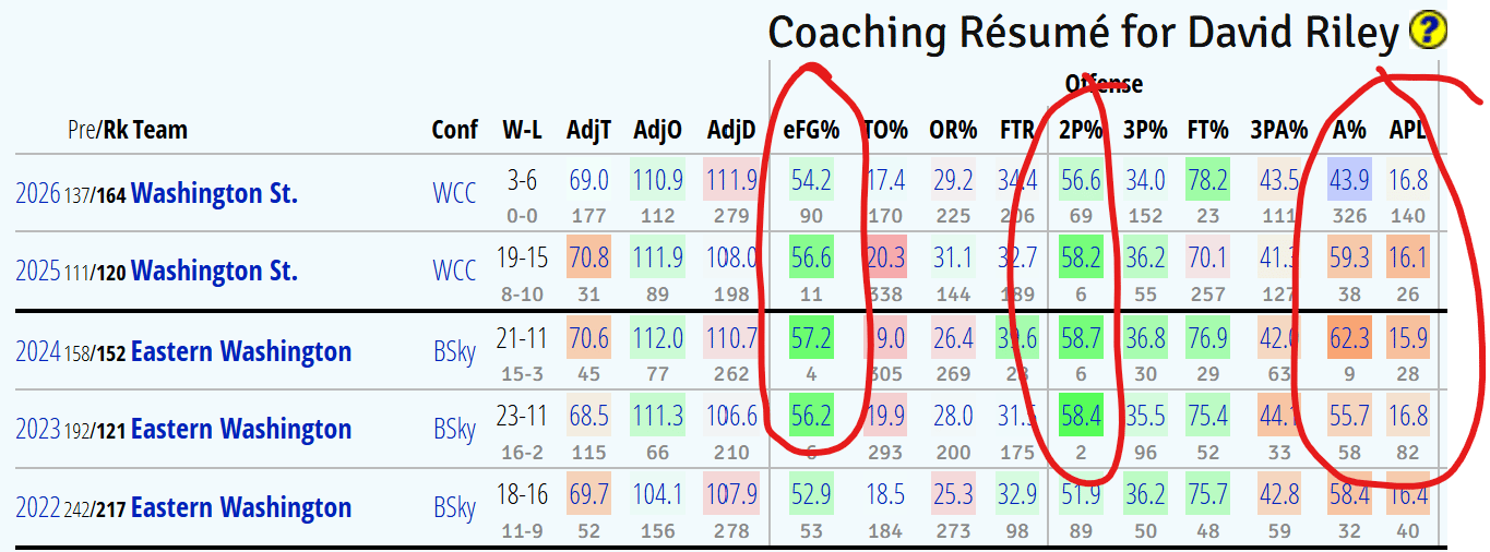 Riley’s offenses are predicated on one thing above all else: Paint touches that turn into easy 2s. This team doesn’t do that, and last night was the low point: 13-of-33 for 39%. This, from kenpom.com, tells a story: