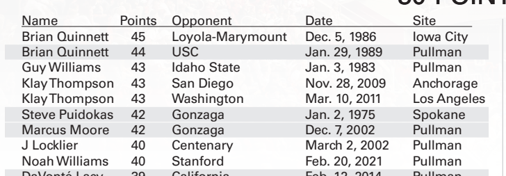 His 40 points are a new freshman record, and the most by an underclassman in college basketball this year. It also is just the 10th 40-point game in WSU history, the first since Noah Williams did it in 20211 :