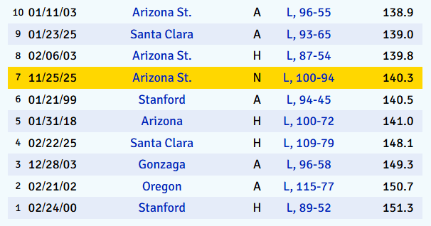 No. 80 Arizona State 100 (6-1), No. 155 WSU 94 (3-4)