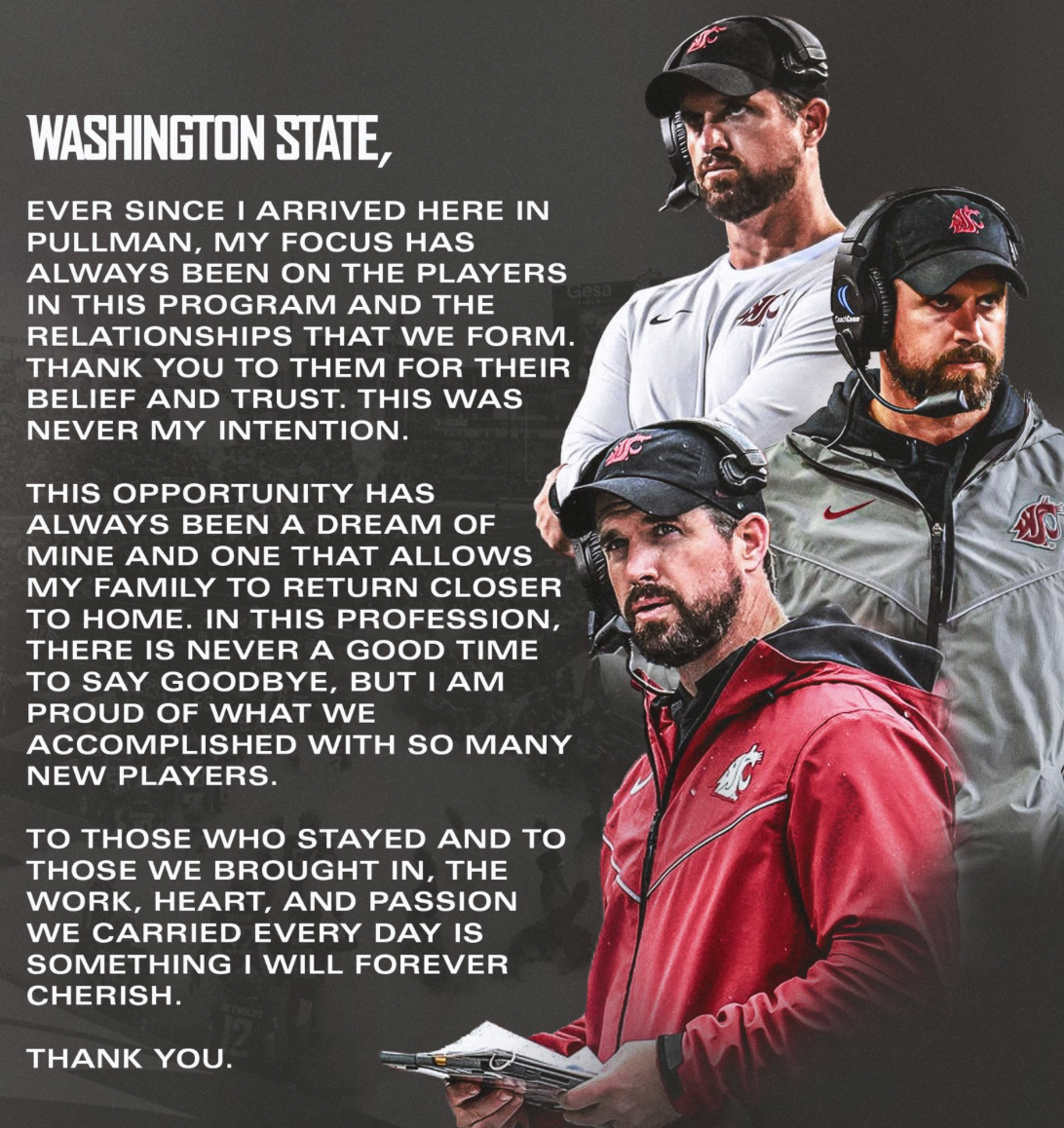 As much as I’ve clowned on Dickert and Rogers for leaving for Wake Forest and Iowa State, the fact that they ran away from Pullman as fast as possible to take objectively lame jobs is assuredly also a reflection of what WSU has to offer at this point. As one person put it to me, it feels like rats off a sinking ship, which is really bleak … and not at all unwarranted, given how many coaches have left other programs, as well.3